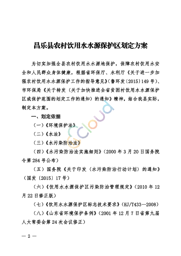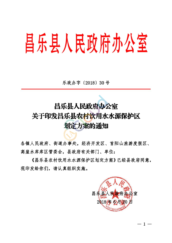 昌乐县人民政府办公室 关于印发昌乐县农村饮用水水源保护区 划定方案的通知.pdf