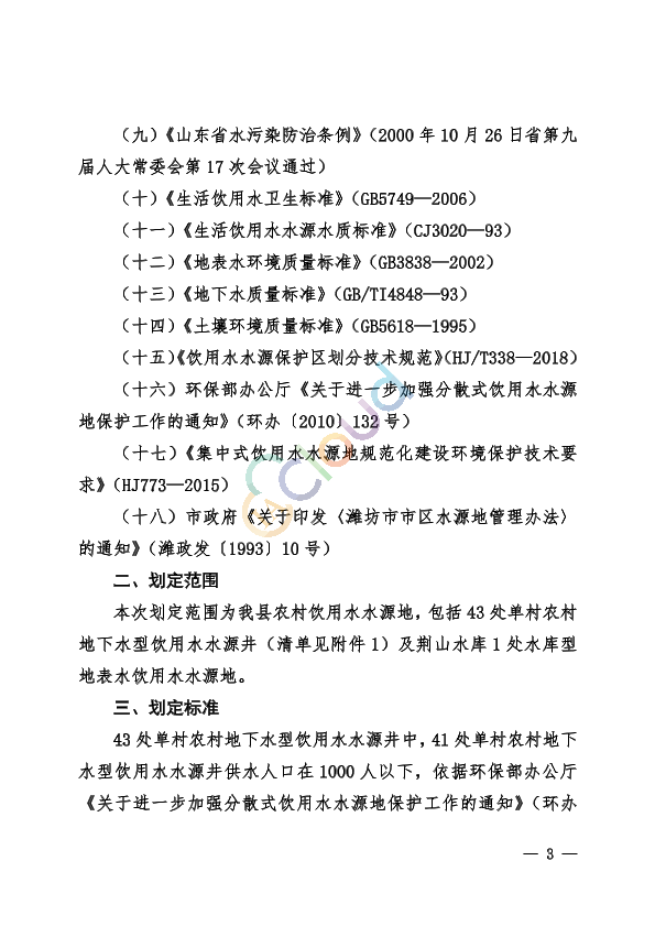 2、关于印发《安丘市农村饮用水水源保护区划定方案》的通知