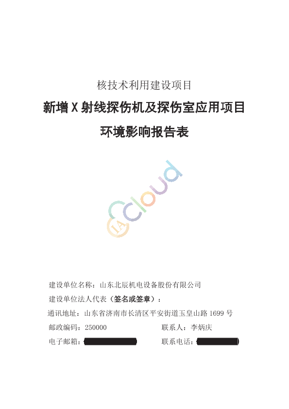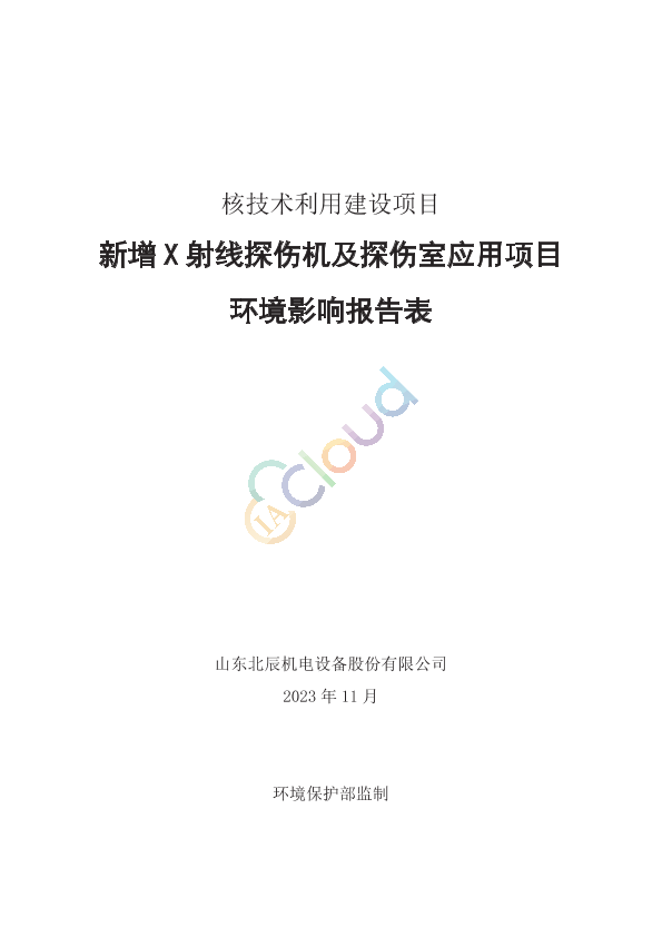 山东北辰机电设备股份有限公司核技术利用建设项目新增X射线探伤机及探伤室应用项目环境影响报告表.pdf