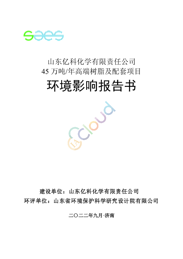 山东亿科化学有限责任公司45万吨/年高端树脂及配套项目环境影响报告书(公示稿) 公开