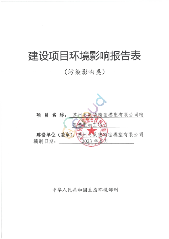 苏州阿莱德精密模塑有限公司精密模塑加工项目环评表.pdf