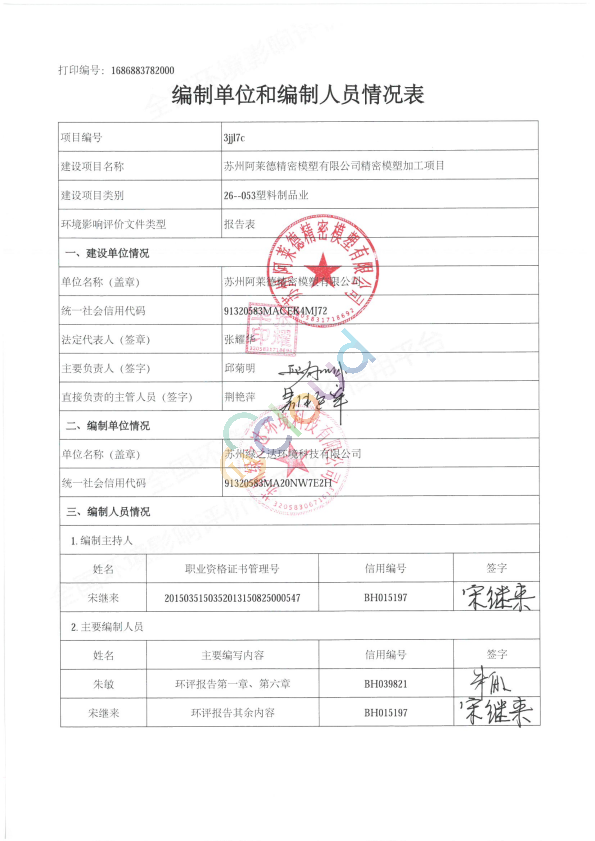 苏州阿莱德精密模塑有限公司精密模塑加工项目环评表