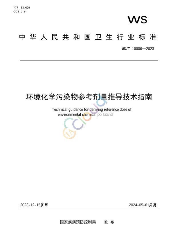 环境化学污染物参考计量推导技术指南 公开