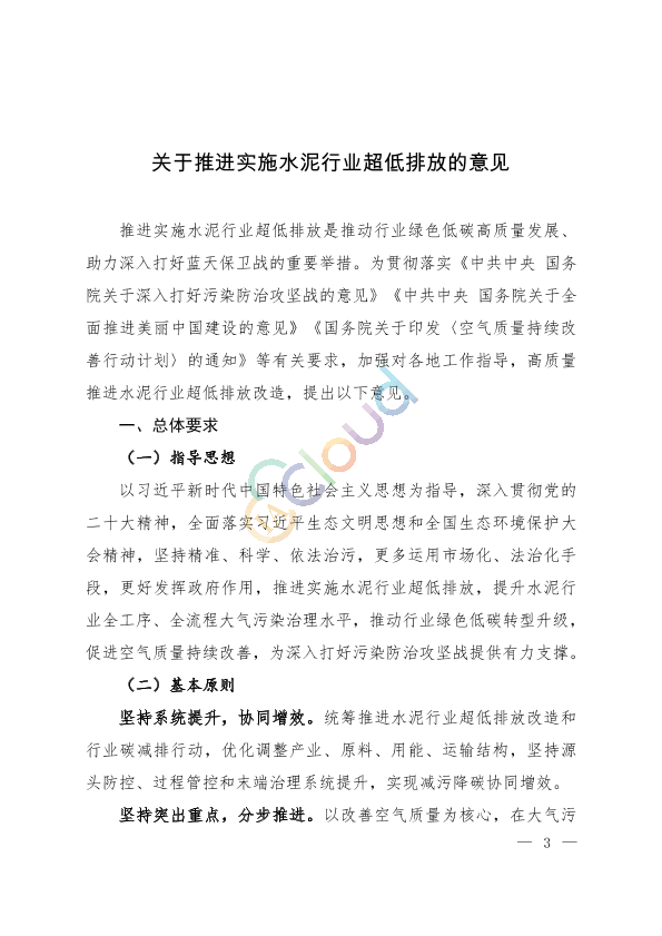 《关于推进实施水泥行业超低排放的意见》的函环大气〔2024〕5号 公开