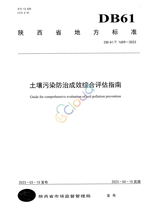 1、土壤污染防治成效综合评估指南 DB61/T1659-2023