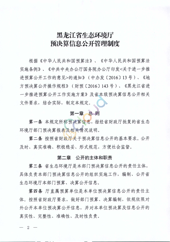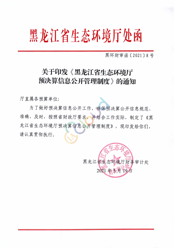 黑环财审函[2021]8号关于印发《黑龙江省生态环境厅预决算信息公开管理制度》的通知