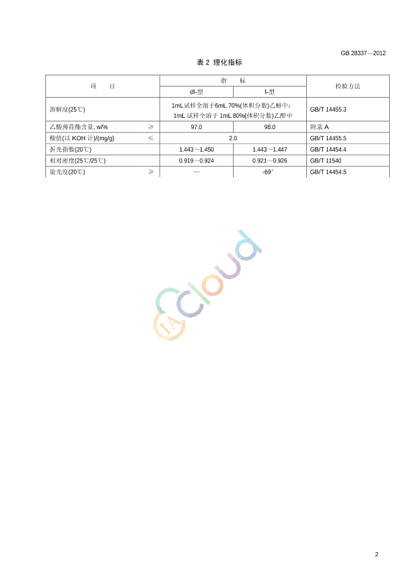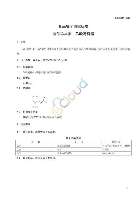 GB 28337-2012 食品添加剂 乙酸薄荷酯