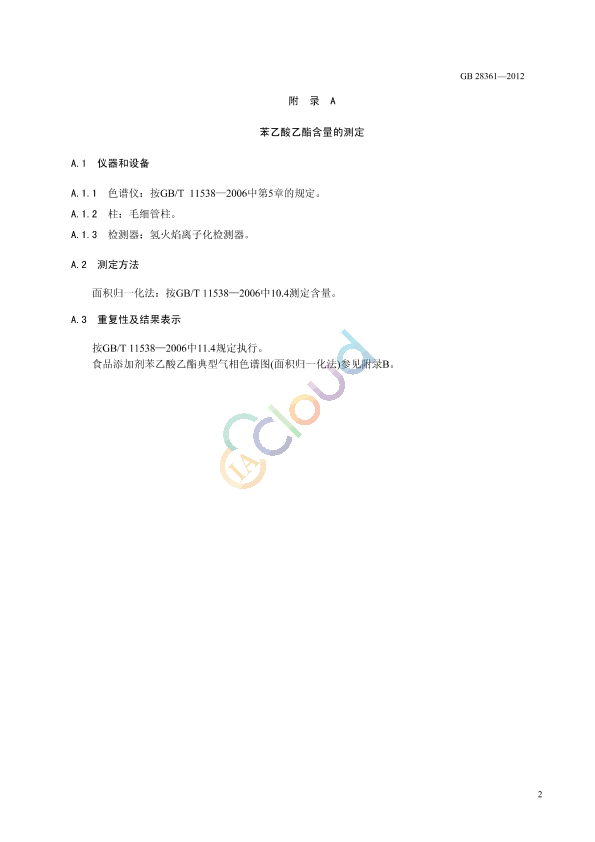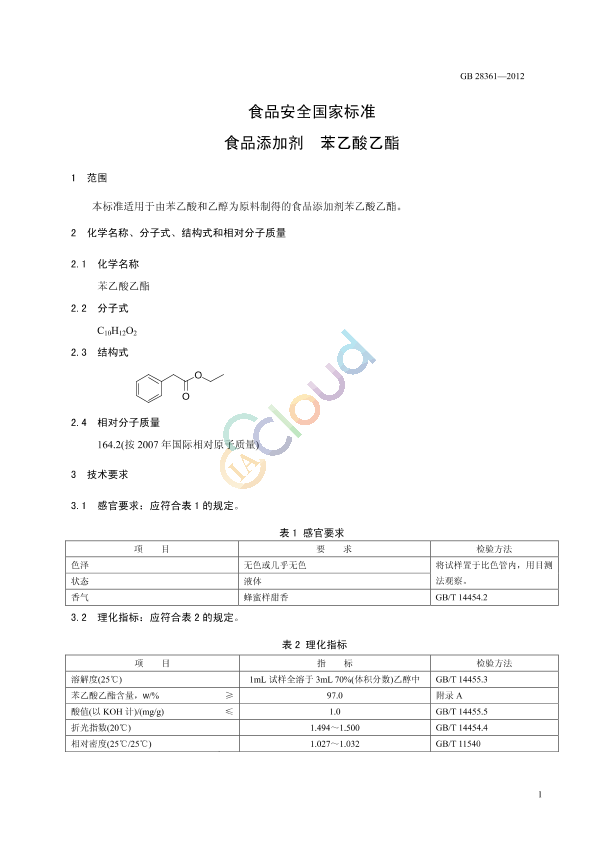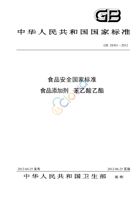 GB 28361-2012 食品添加剂 苯乙酸乙酯