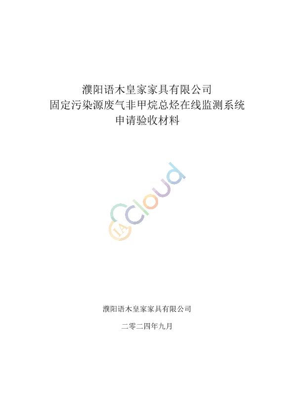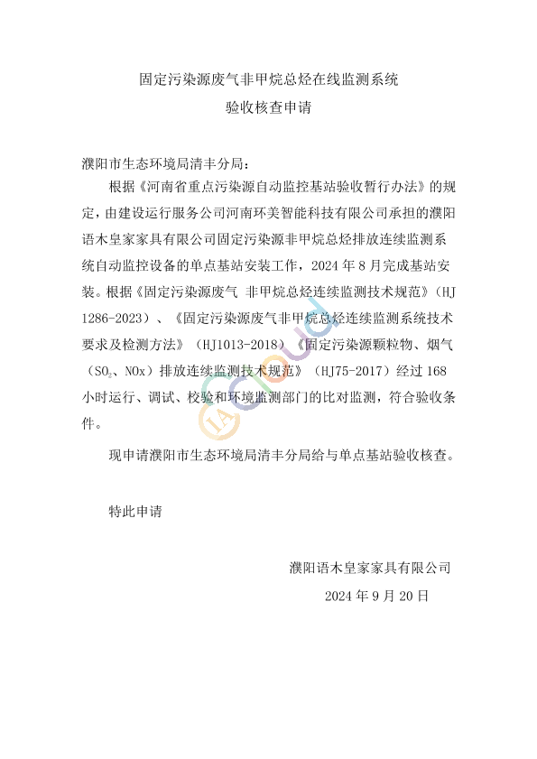 固定污染源废气非甲烷总烃在线监测系统 申请验收材料 公开