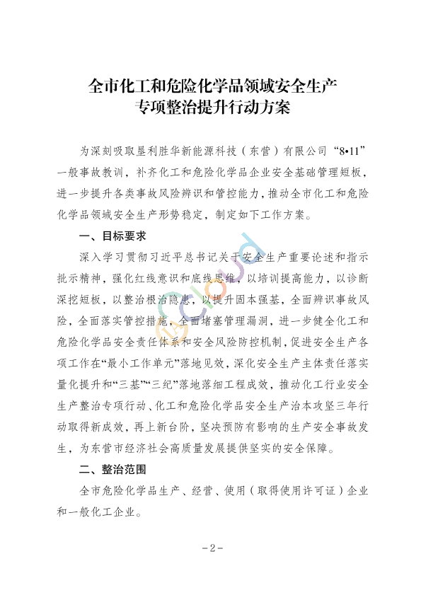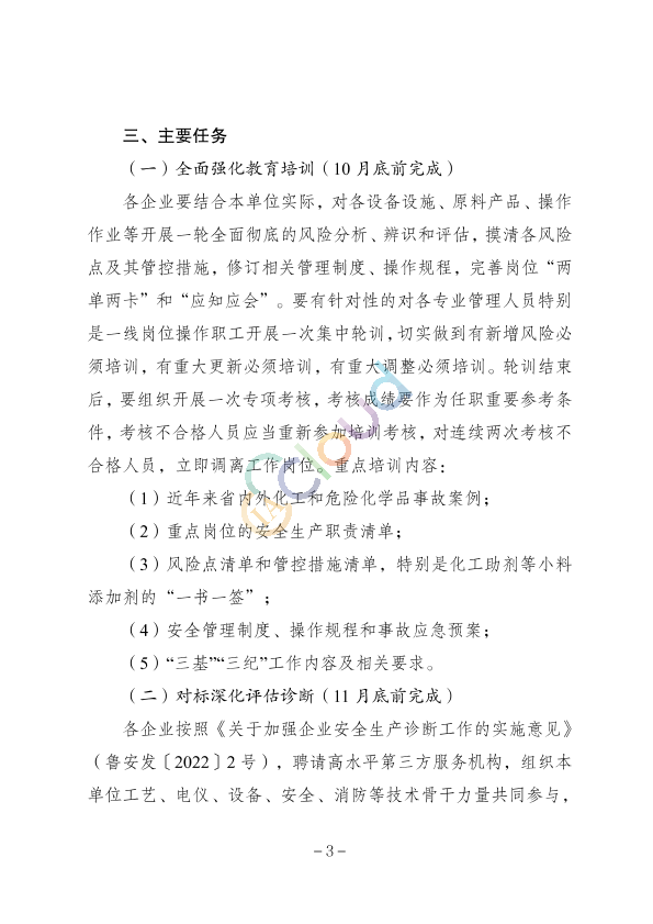 3、关于印发《山东省化工行业安全生产整治提升专项行动总体工作方案》的通知