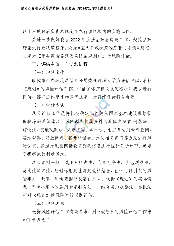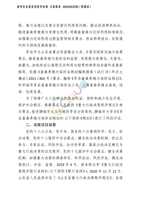 《莘县畜禽养殖污染防治规划》风险评估报告