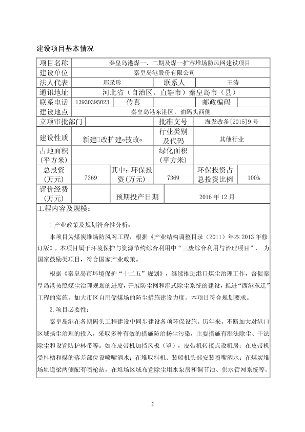 秦皇岛港煤一、二期及煤一扩容堆场防风网建设项目3815.pdf
