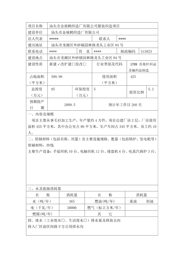 汕头市金禧鹤织造厂有限公司环境影响登记表pdf