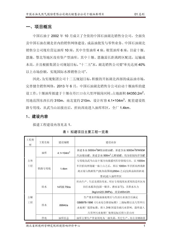 1、中国石油湖北销售分公司黄冈油库小池码头改造工程环境影响报告书5455