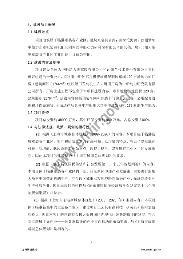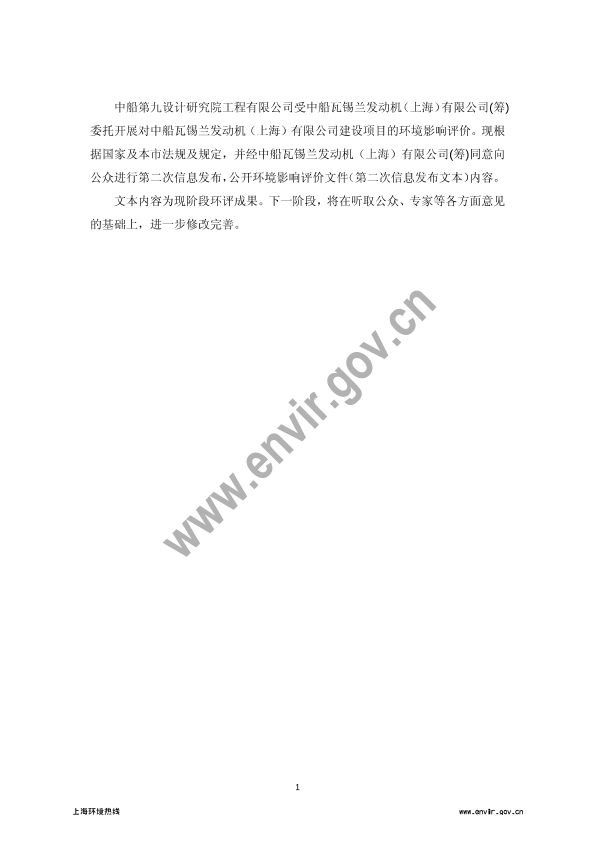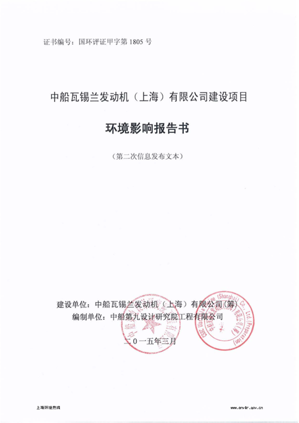 1、中船瓦锡兰发动机(上海)有限公司建设项目环境影响评价报批前公示2765