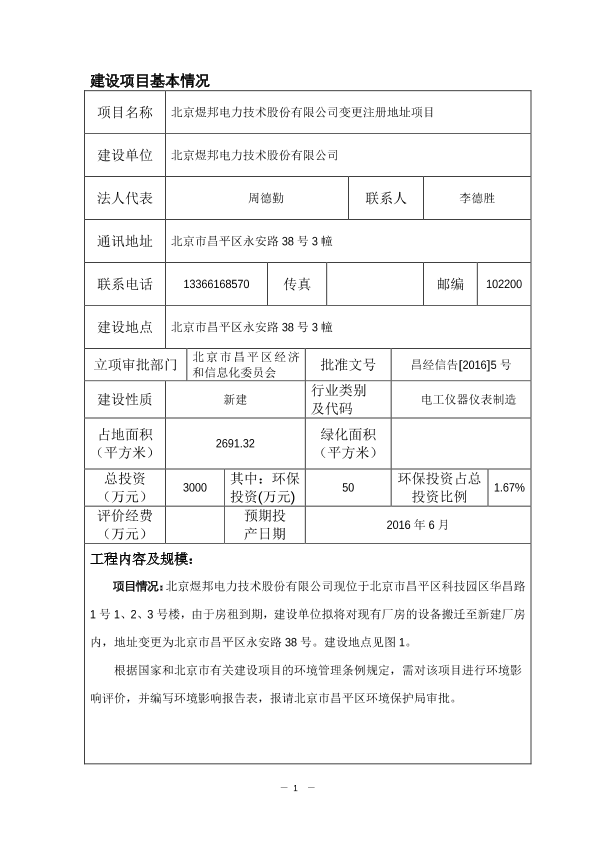 北京煜邦电力技术股份有限公司变更注册地址项目a68377a6306