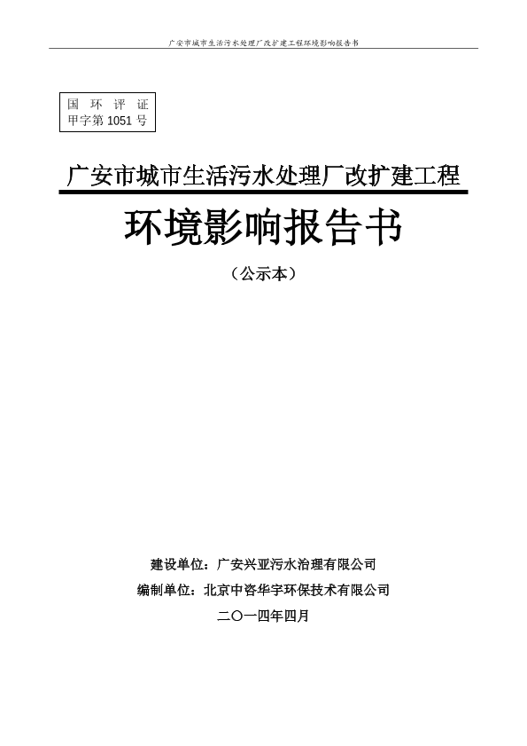 广安市城市生活污水处理厂改扩建工程 公开