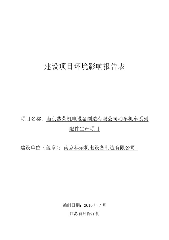 南京恭荣机电设备制造有限公司动车机车系列配件生产项目环境影响报告表全本公示9197