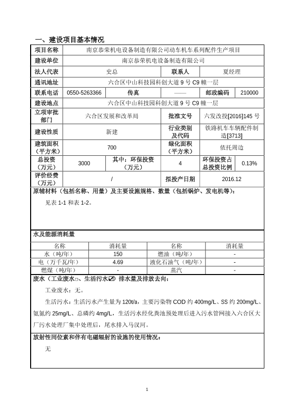南京恭荣机电设备制造有限公司动车机车系列配件生产项目环境影响报告表全本公示9197.pdf