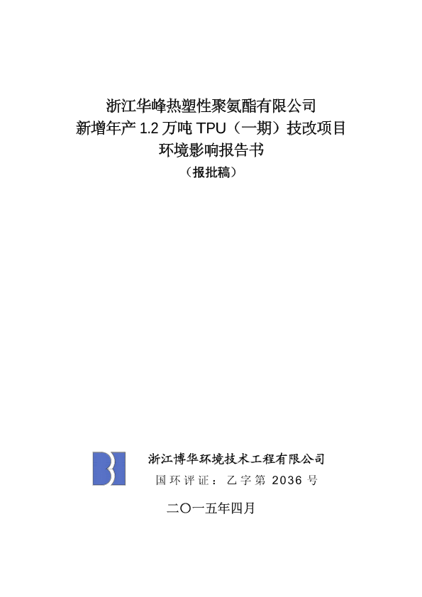 2、关于受理浙江华峰热塑性聚氨酯有限公司年产1.2万吨tpu及工艺提升技改项目环境影响报告书的公告