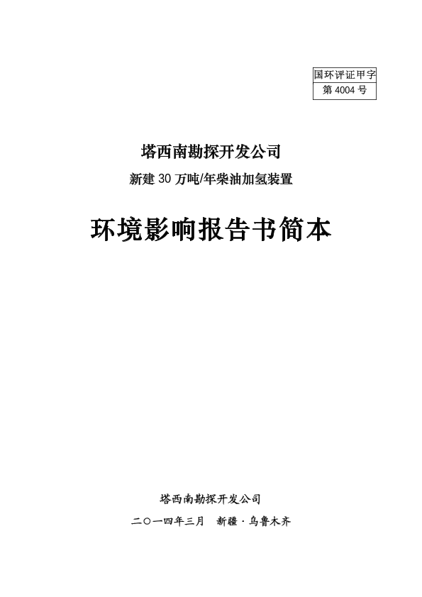 塔西南勘探开发公司新建30万吨年柴油加氢装置_137992.pdf