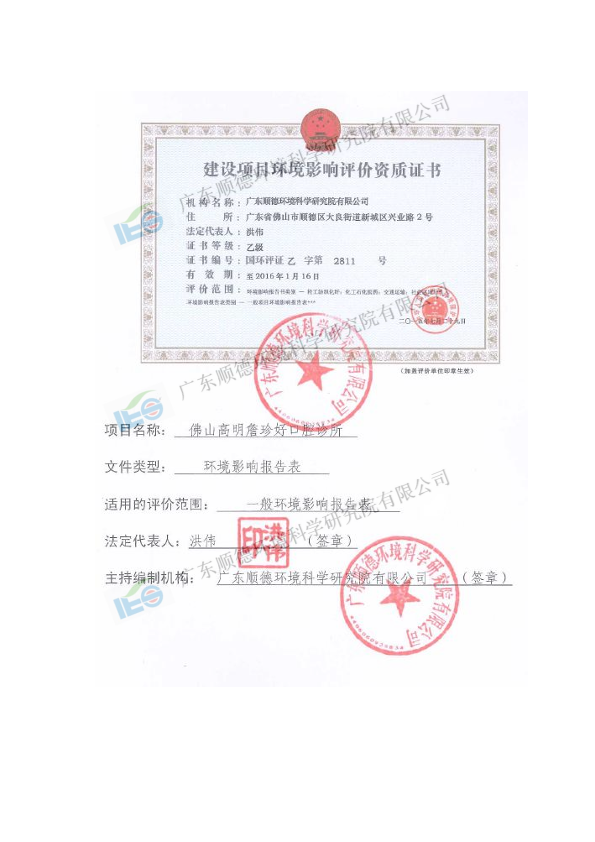 1、佛山高明区惠真口腔诊所建设项目报告表