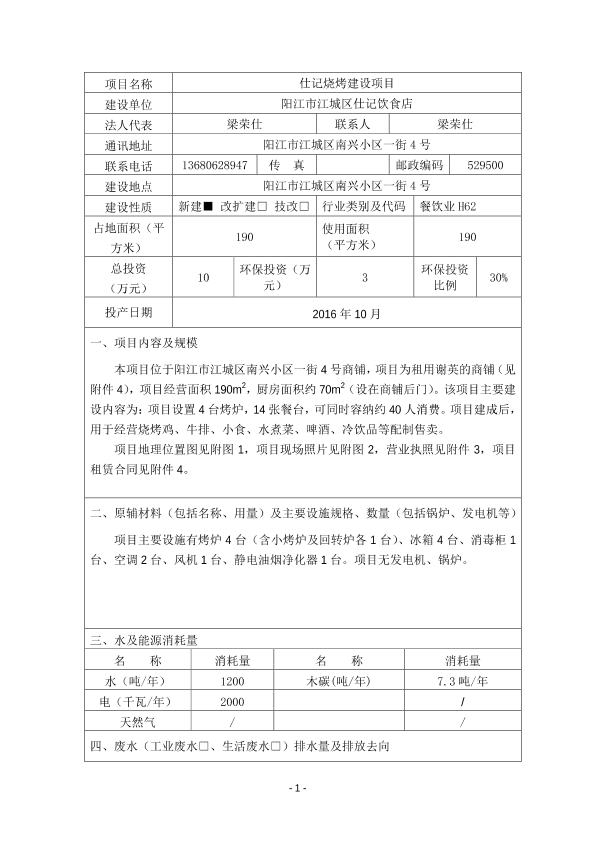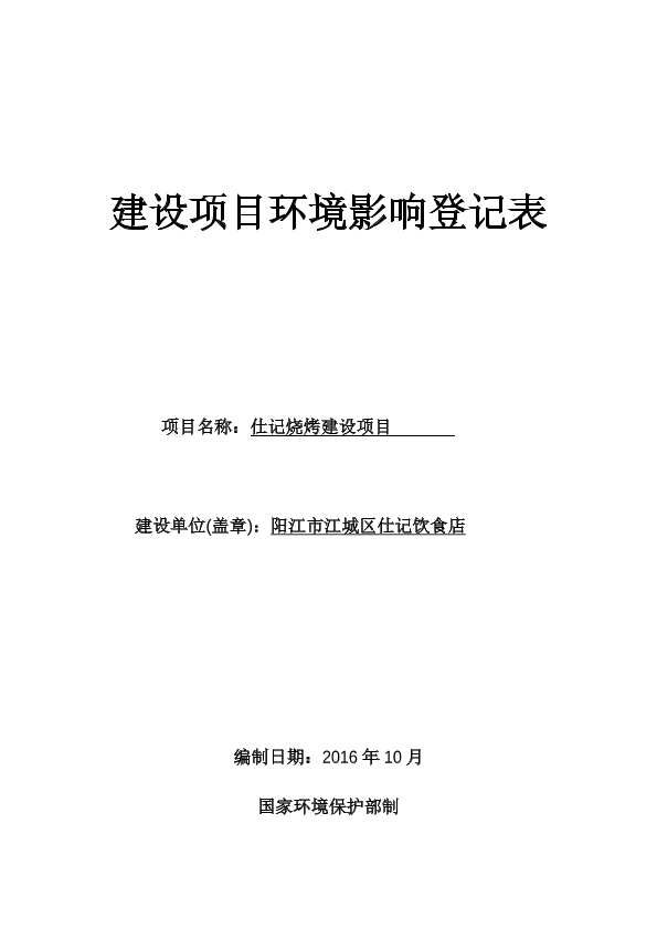 关于仕记烧烤建设项目环境影响登记表的受理公告