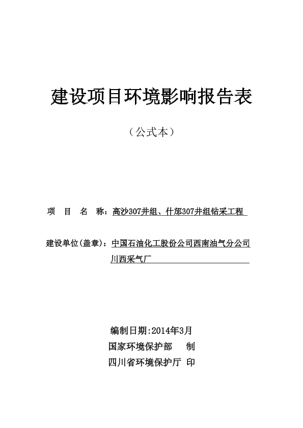 中国石油化工股份有限公司西南油气分公司川西采气厂高沙307井组、什邡307井组钻采工程_38280.pdf