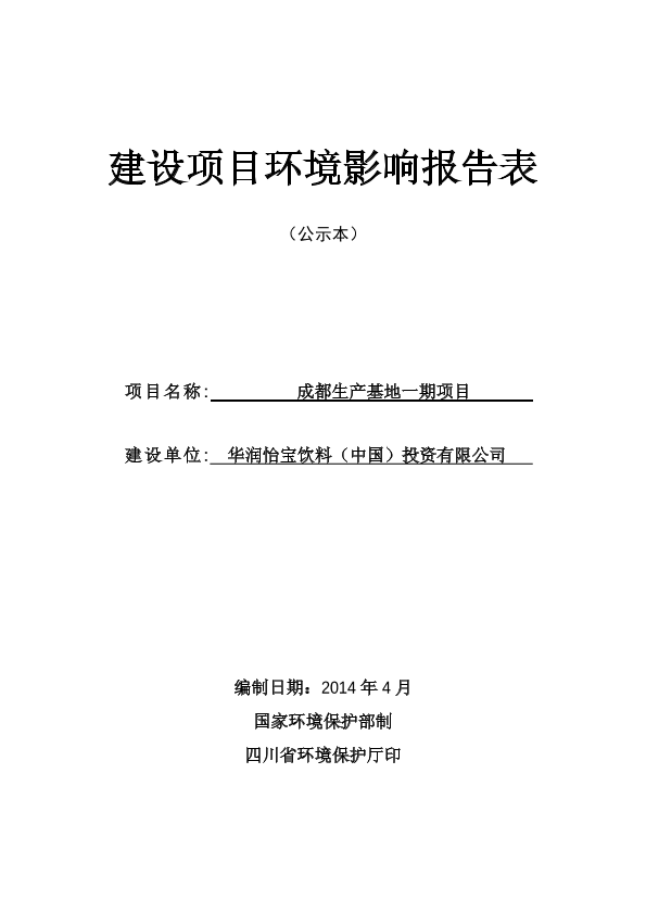 华润怡宝饮料(中国)投资有限公司成都生产基地一期项目9265.pdf