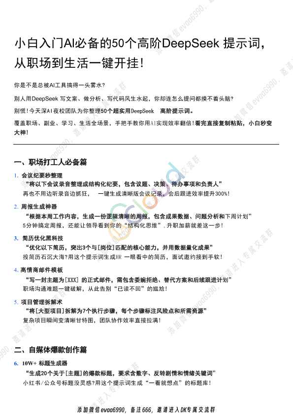 小白入门DeepSeek必备的50个高阶提示词(7) 公开