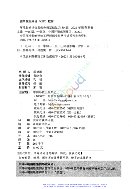 环境影响评价案例分析基础过关 50 题 公开