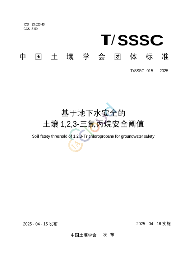 基于地下水安全的土壤1,2,3-三氯丙烷安全阈值