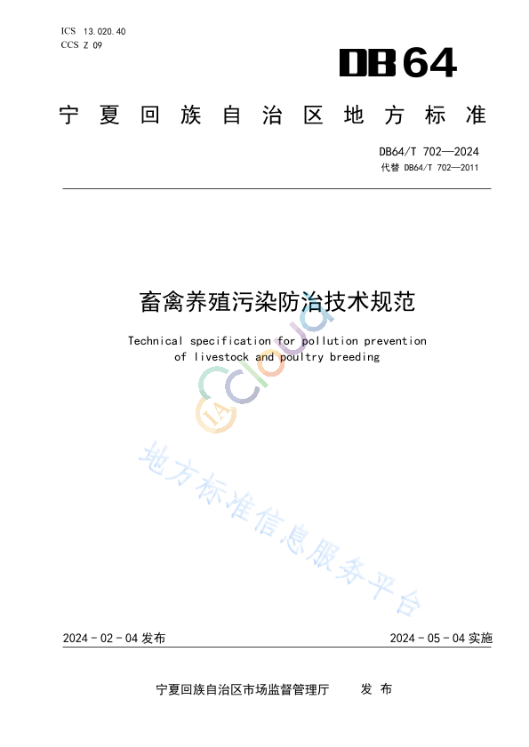 畜禽养殖污染防治技术规范 (宁夏地标 DB64T 702-2024) 公开