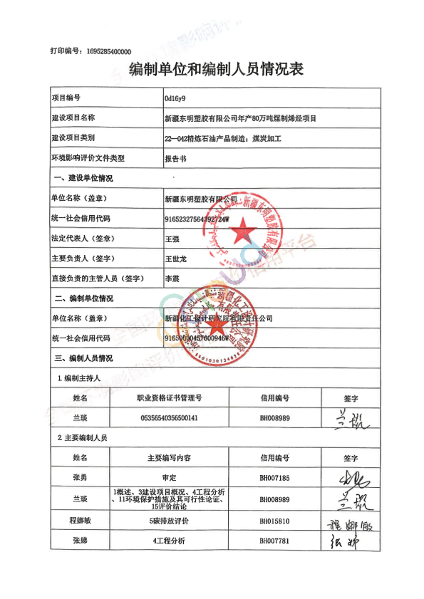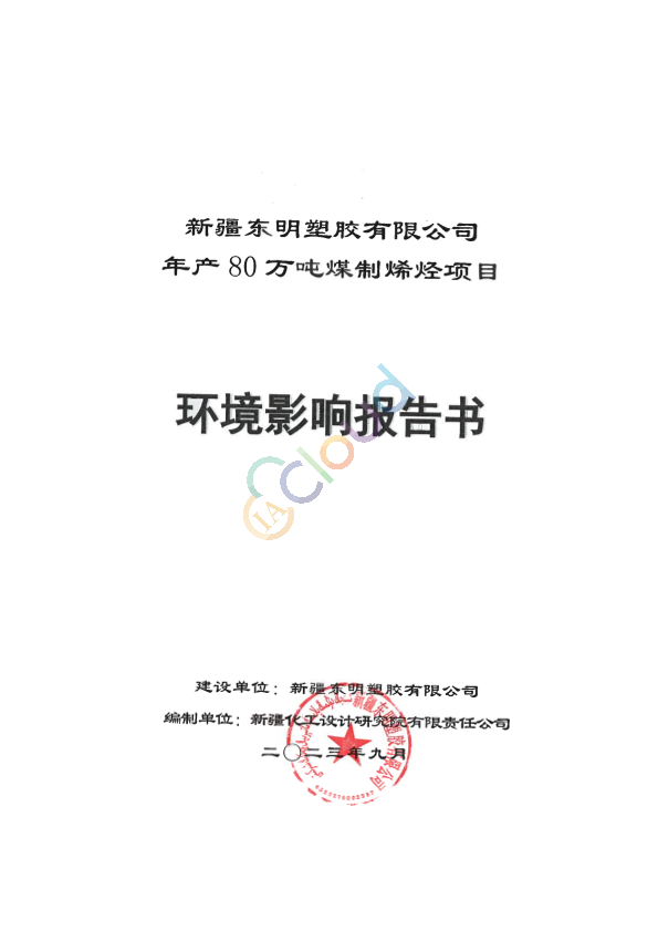 新疆东明塑胶有限公司年产80万吨煤制烯烃项目环境影响报告书 公开