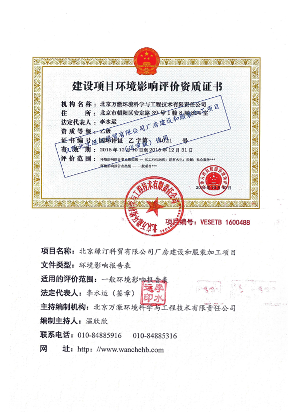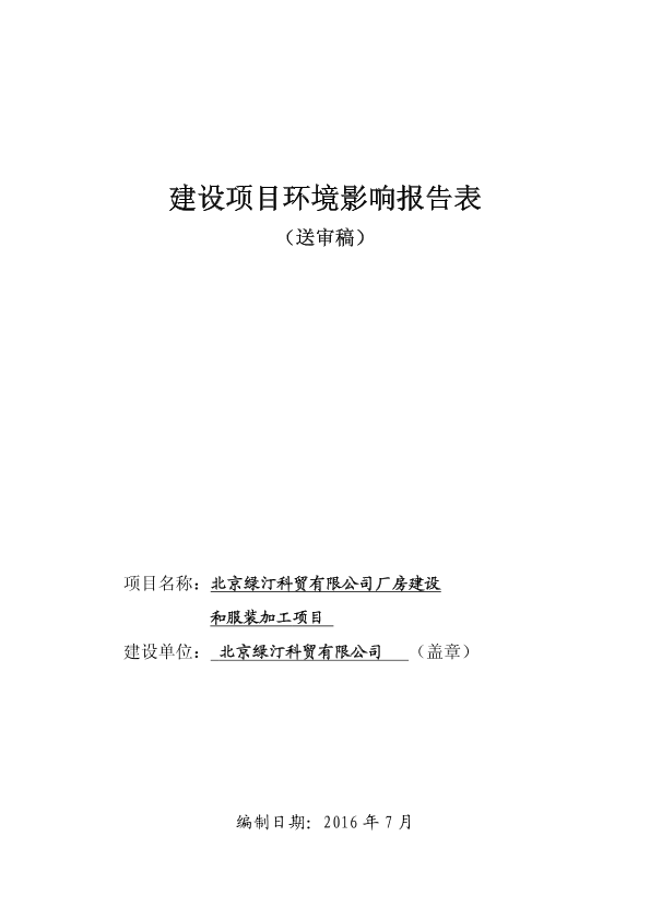 北京绿汀科贸有限公司厂房建设和服装加工项目a51118a5963