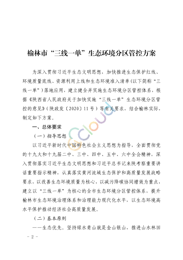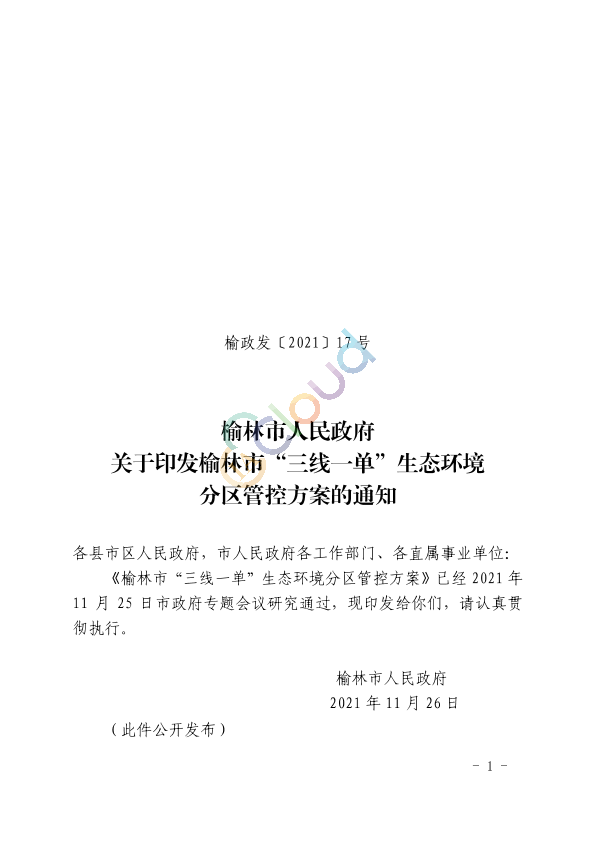 榆政发〔2021〕17 号 关于印发榆林市“三线一单”生态环境分区管控方案的通知 公开