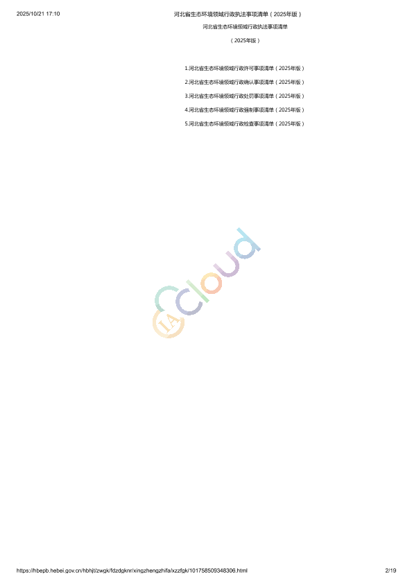 河北省生态环境领域行政执法事项清单(2025年版)