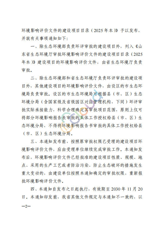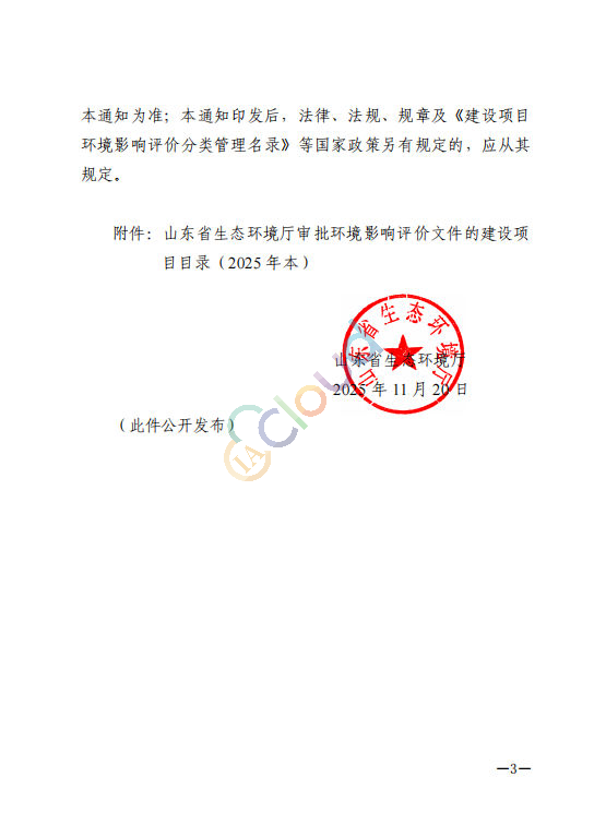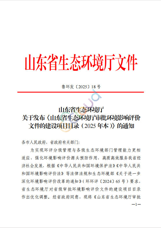 《山东省生态环境厅审批环境影响评价文件的建设项目目录(2025 年本)》的通知鲁环发〔2025〕18 号 公开