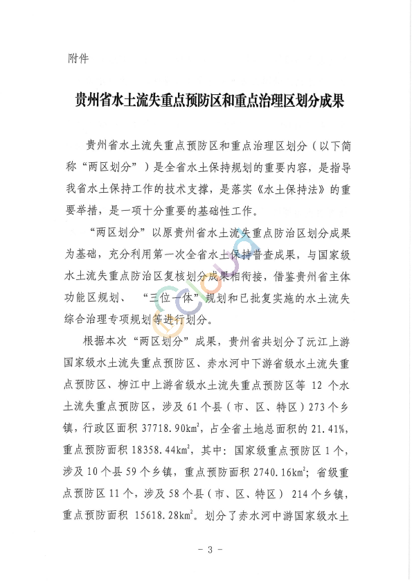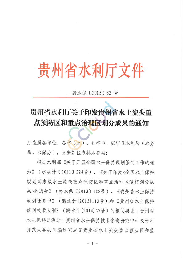 《贵州省水利厅关于印发贵州省水土流失重点预防区和重点治理区划分成果的通知》(黔水保〔2015〕82号)