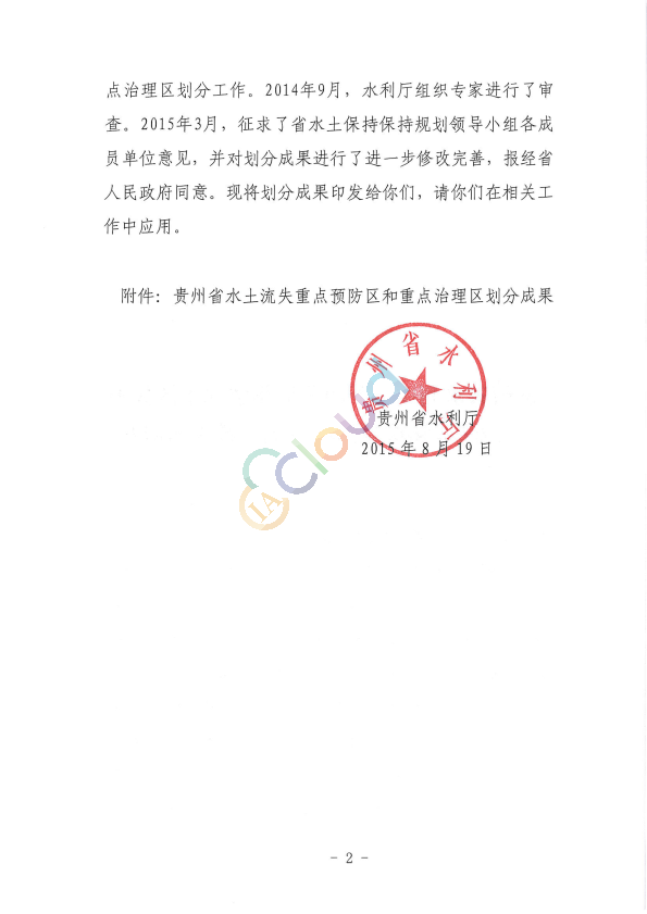 《贵州省水利厅关于印发贵州省水土流失重点预防区和重点治理区划分成果的通知》(黔水保〔2015〕82号).pdf