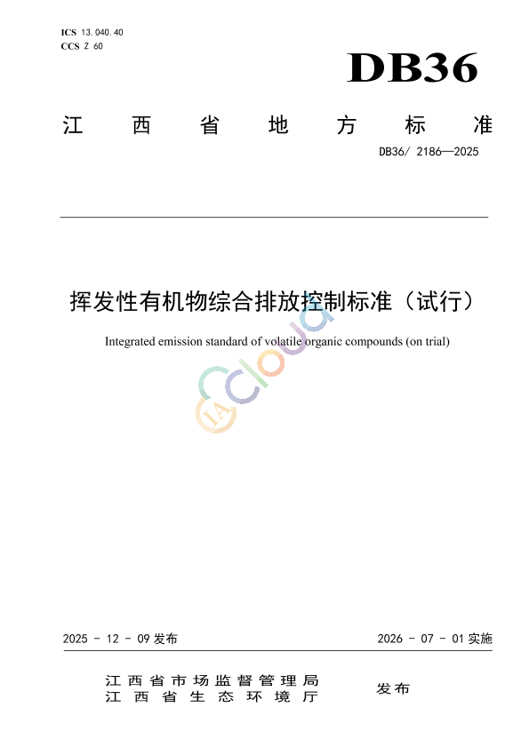 《挥发性有机物综合排放控制标准(试行)》(DB36 2186-2025) 公开