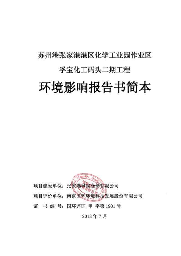 苏州港张家港港区化学工业园作业区孚宝化工码头二期工程