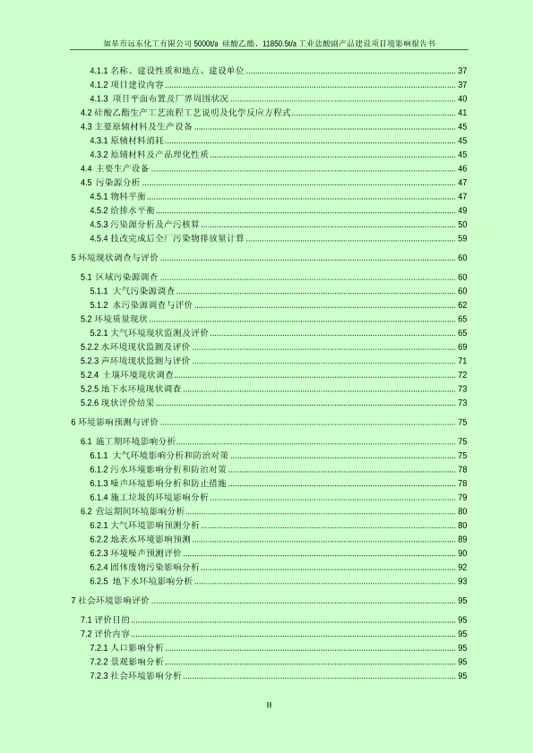 如皋市远东化工有限公司5000吨硅酸乙酯,118505吨工业盐酸副产品建设项目环境影响报告书