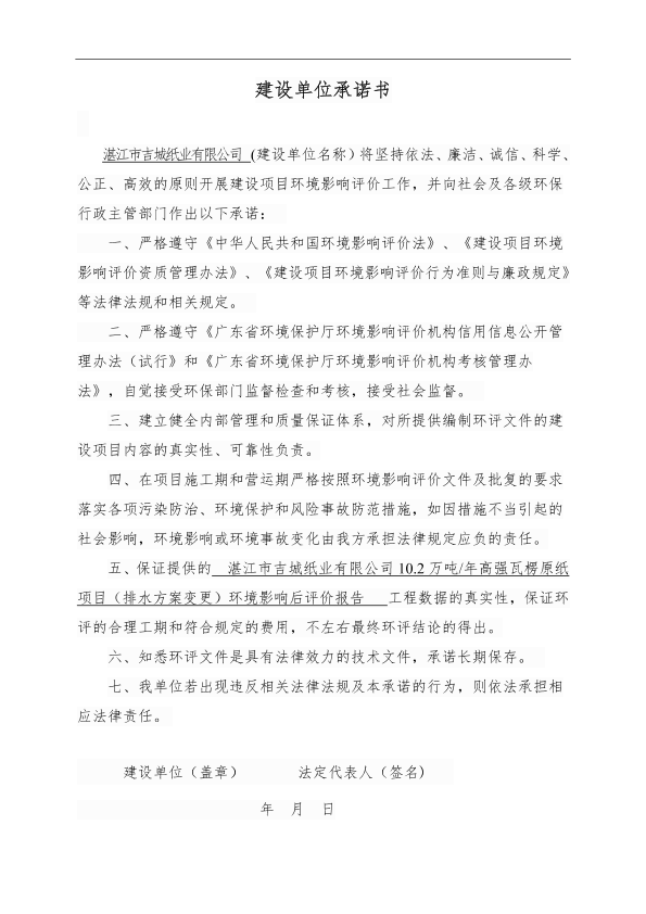 湛江市吉城纸业有限公司 10.2 万吨年高强瓦楞原纸项目(排水方案变更)763796194
