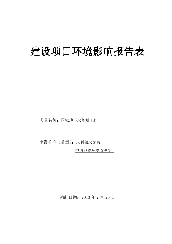 国家地下水监测工程 公开