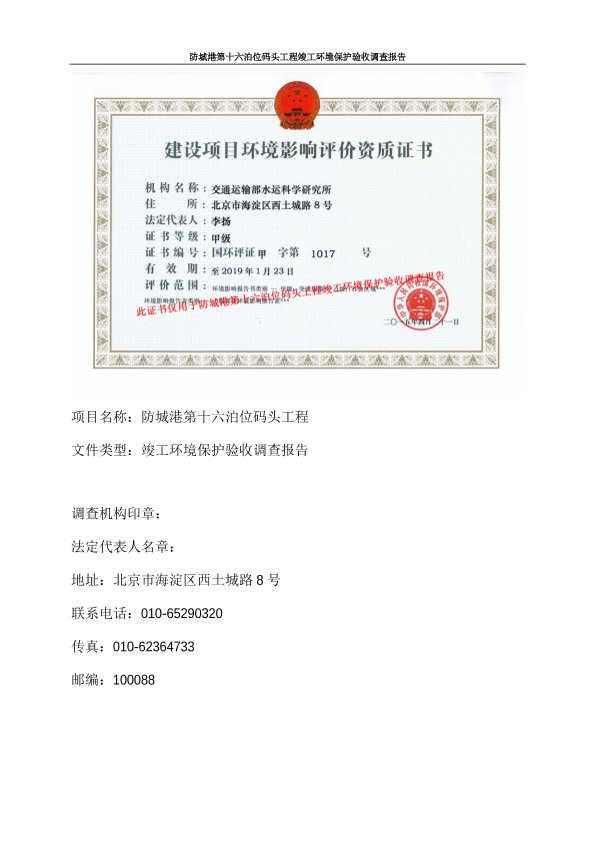 防城港第十六泊位码头建设项目竣工环境保护验收288378877