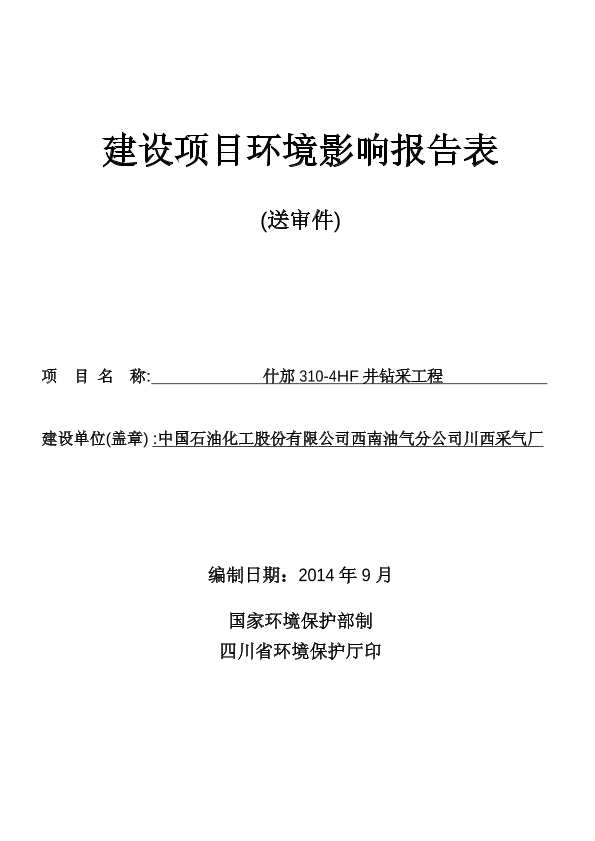 中石化西南油气分公司川西采气厂什邡310-4hf井钻采工程