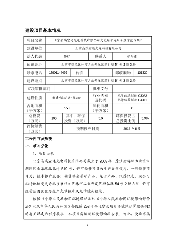北京晶瑞宏远光电科技有限公司变更经营地址和经营范围项目5652.pdf