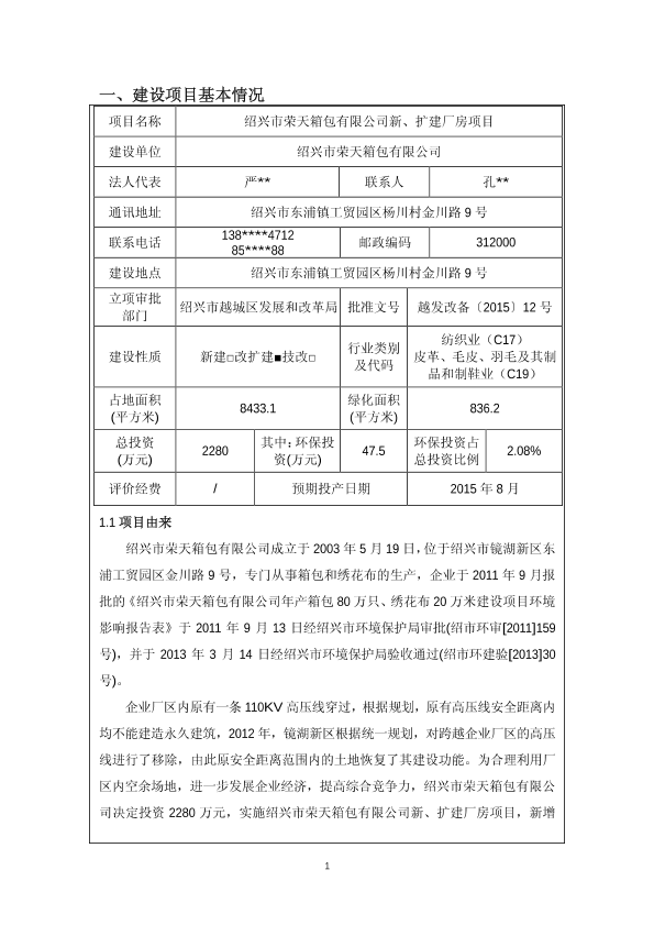 绍兴市荣天箱包有限公司新、扩建厂房项目924383670