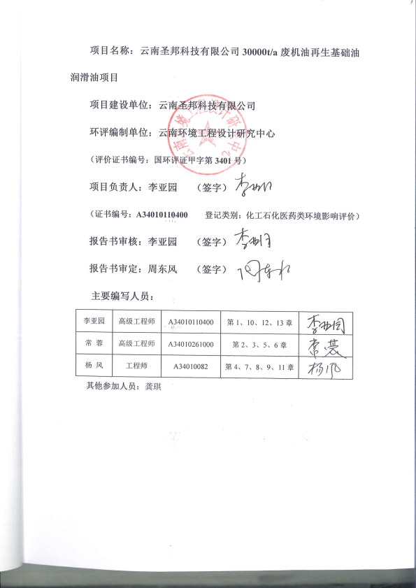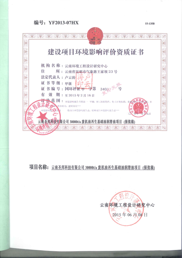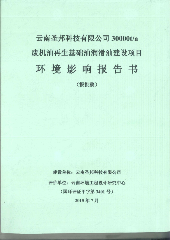 云南圣邦科技有限公司30000ta废机油再生基础油润滑油建设项目269731498 公开